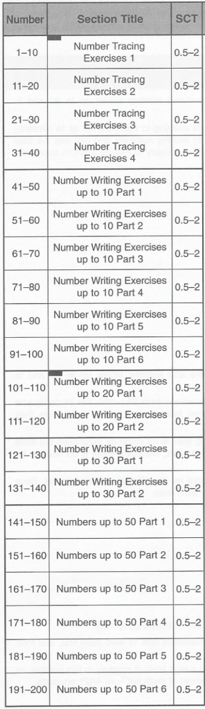 It is important to note that students are not required to write numbers neatly from the beginning, but rather aim for them to improve their work skills through practice of writing numbers. Once their work skills are improved, they will become more relaxed and will naturally write numbers to match the size of the numbers that appear on the worksheets.