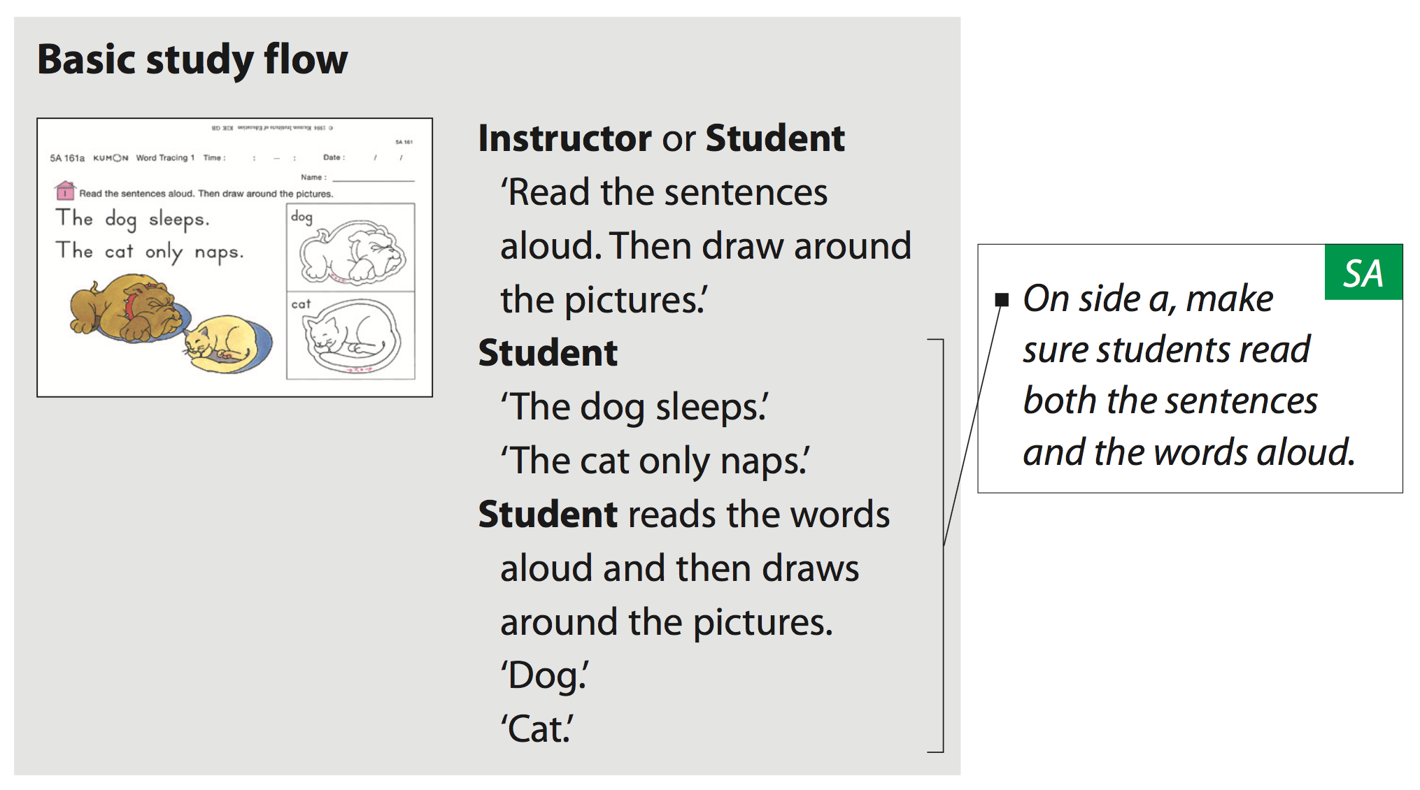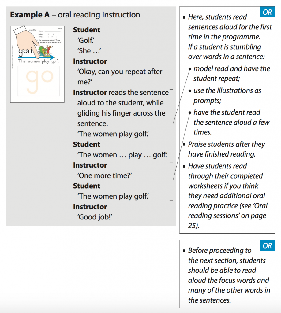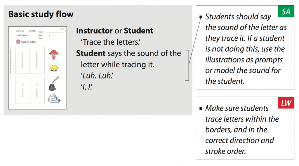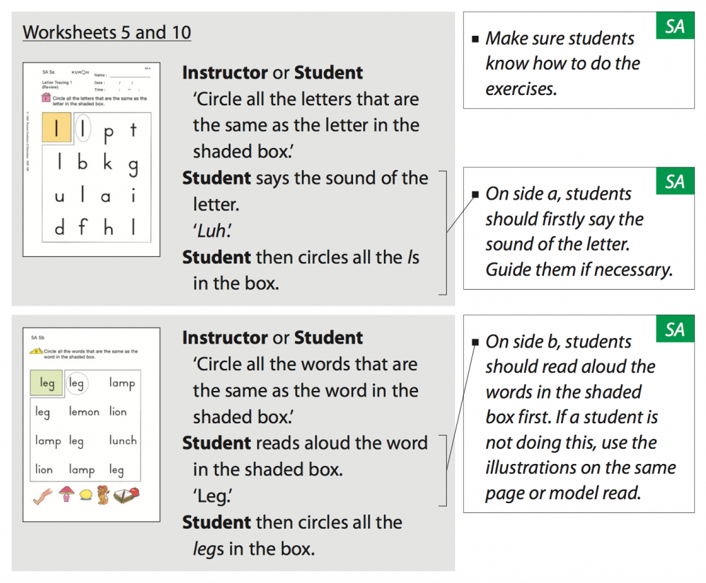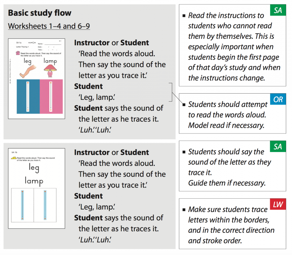 Make sure your child is in the habit of reading the worksheets aloud as they complete them. Read the instructions if she/he cannot read them by themselves. This is especially important when your child begins the first page of that day’s study and when the instructions change.