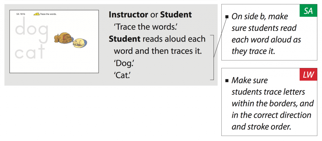 Bear in mind that Level 5A is the first level in the programme in which your child is expected to read words and sentences. He/She may need help with words that they are reading for the first time. That’s okay to help them.