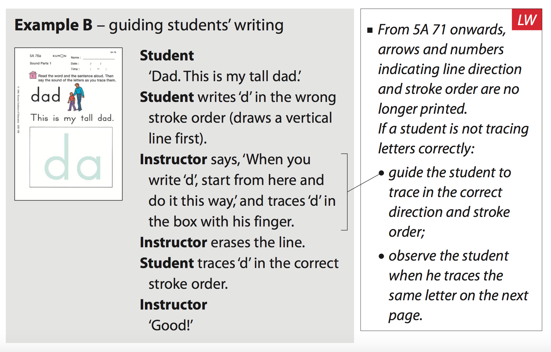 – traces the letters in the correct direction and stroke order.