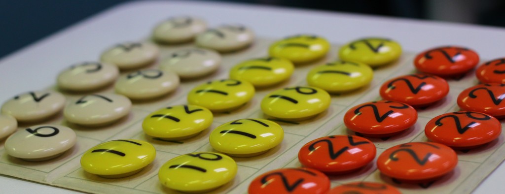 The 30-piece number board is recommended here so students can practice counting and increase their ability to recognise numbers. The number board is designed in such a way that students can first attempt 1-10, then 1-20 and lastly 1-30. Any additional exercises using the number board is only limited by your imagination. Number boards can be purchased from the Kumon Centre for $30 or can be loaned from the Centre with a $30 deposit.