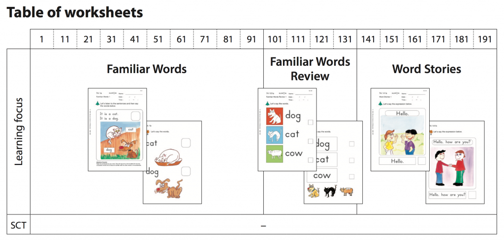 The abilities of students who are studying Level 7A vary greatly but bear in mind that your child is only expected to repeat words (7A 1–140) and sentences (7A 141–200) after you.